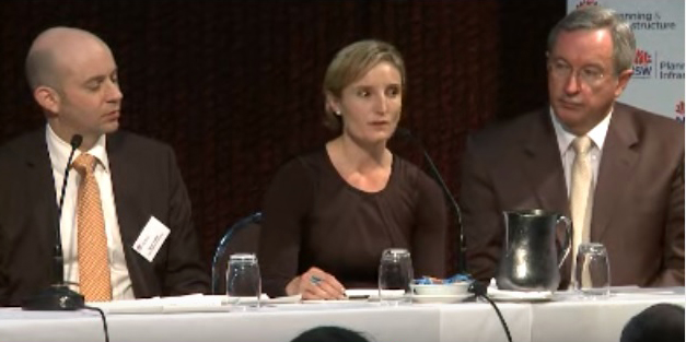 Sarah Hill, NSW vice-president of the Planning Institute of Australia, sums up the feedback from the “innovative ideas and wild card” workshop at the Ministerial planning forum held at the Waterview Convention Centre in Bicentennial Park, Sydney Olympic Park on 22 July 2011. The forum discussed ideas for a new planning system for NSW.